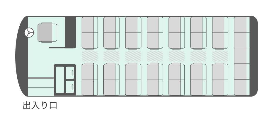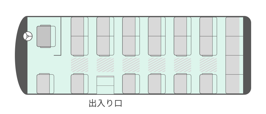 定員:28名/正座席:22名/補助席:6名※車両によって、車内設備が異なる場合がございますので、予めご了承ください。