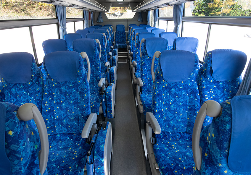 ゆったりとした車内で快適な乗り心地。大きすぎない40人乗りですので職場や地域での小旅行の用途に最適です。