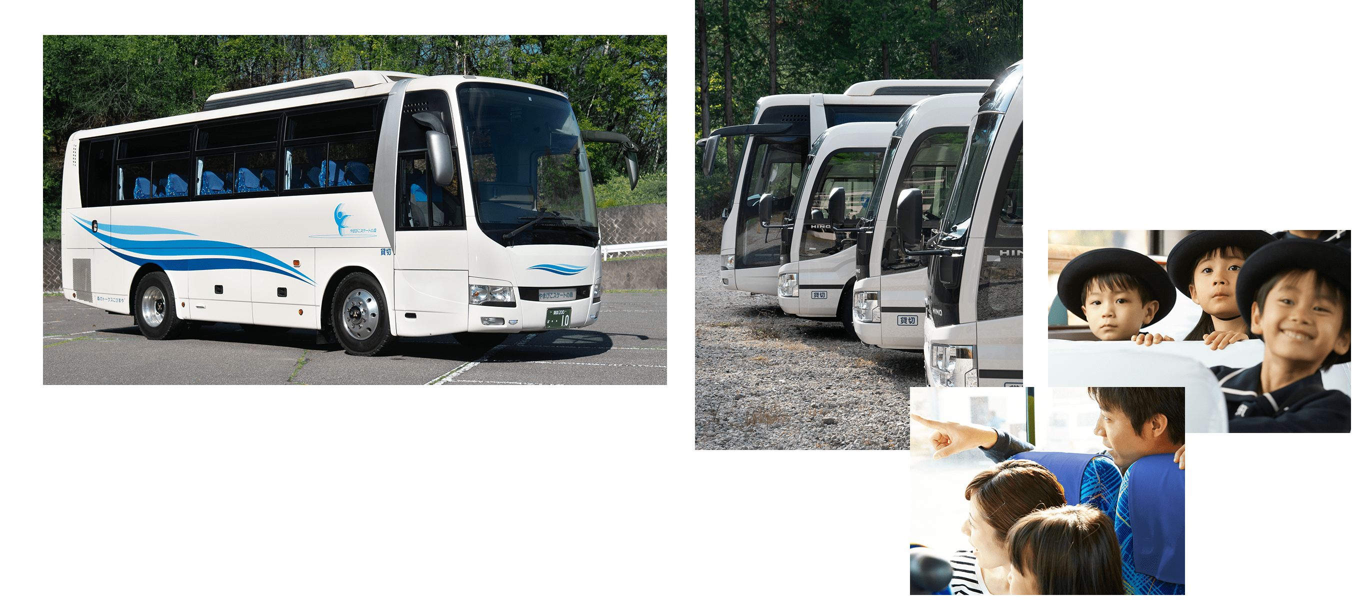 スポーツでの遠征や修学旅行などの学校行事、大人数の日帰り旅行から、ちょっとした送迎、冠婚葬祭・研修視察といった近距離の移動にも当社のバスをリーズナブルにご提供いたします。まずはお気軽にお問合せください。